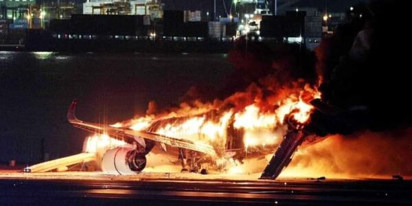 SE INCENDIA AVIÓN EN JAPÓN EN AEREOPUERTO DE HANEDA