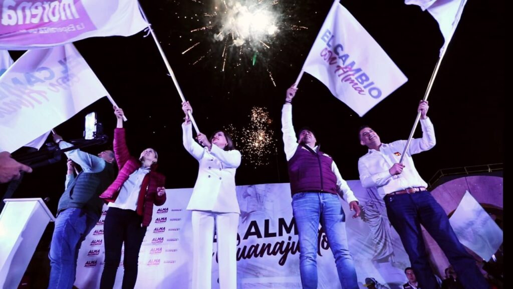 Alma Alcaraz invitó a los guanajuatenses a unirse con ella para lograr un nuevo Guanajuato con mayor seguridad, mejores empleos, buenos salarios y más becas y programas sociales para el pueblo.