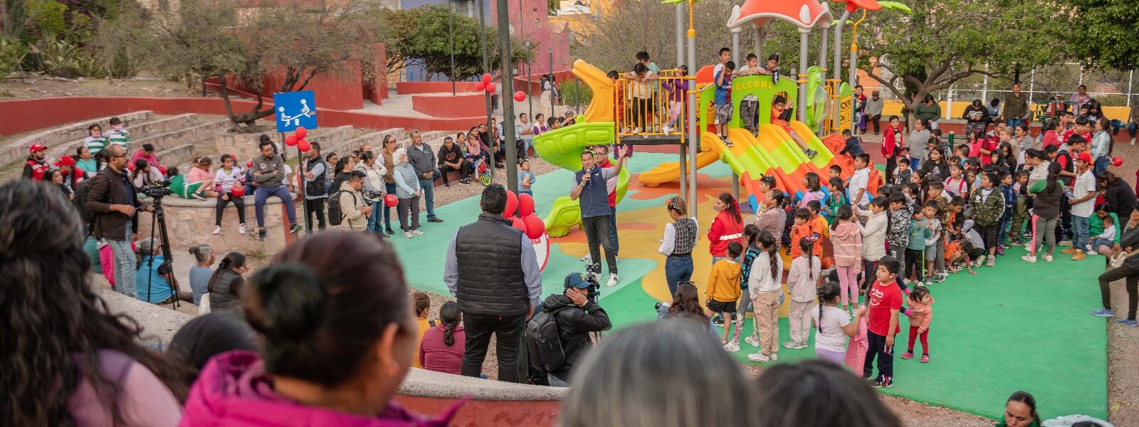 «Esto es recuperación de áreas públicas, esto es, ver a todos los niños allá arriba, ese es un éxito de verdad. Cuando ustedes vean que los niños y las niñas hacen lo suyo aquí en los juegos nada más, eso quiere decir que sienten en confianza de su espacio y que este espacio que está agarrando buen color, no decaiga», expresó Mauricio Trejo.