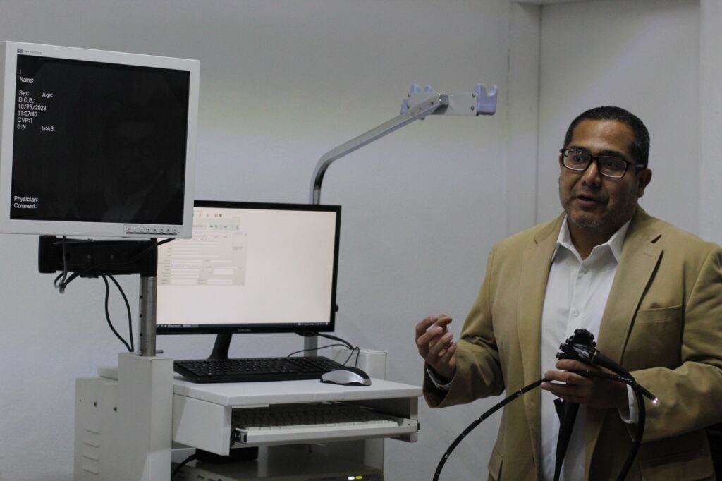 Fernando Zermeño de la empresa Móvil Endoscopí dio una breve explicación de su funcionamiento y dijo que en este aparato se pueden prevenir muchas enfermedades como cancer, ulserás, sangrados o tratar anomalías o patologías del tracto digestivo alto o bajo.