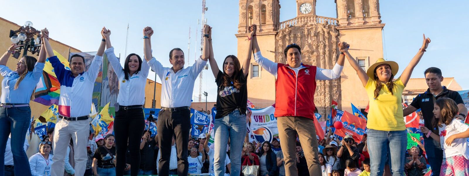Dolores Hidalgo, Guanajuato. La unidad de las y los guanajuatenses hizo vibrar la Cuna de la Independencia Nacional la tarde de este sábado. La coalición PAN, PRI y PRD, las y los dolorenses y la candidata a Gobernadora, Libia Dennise García Muñoz Ledo abarrotaron la Plaza Principal de Dolores Hidalgo para acompañar el arranque de campaña del candidato por la alcaldía, Adrián Hernández Alejandri.