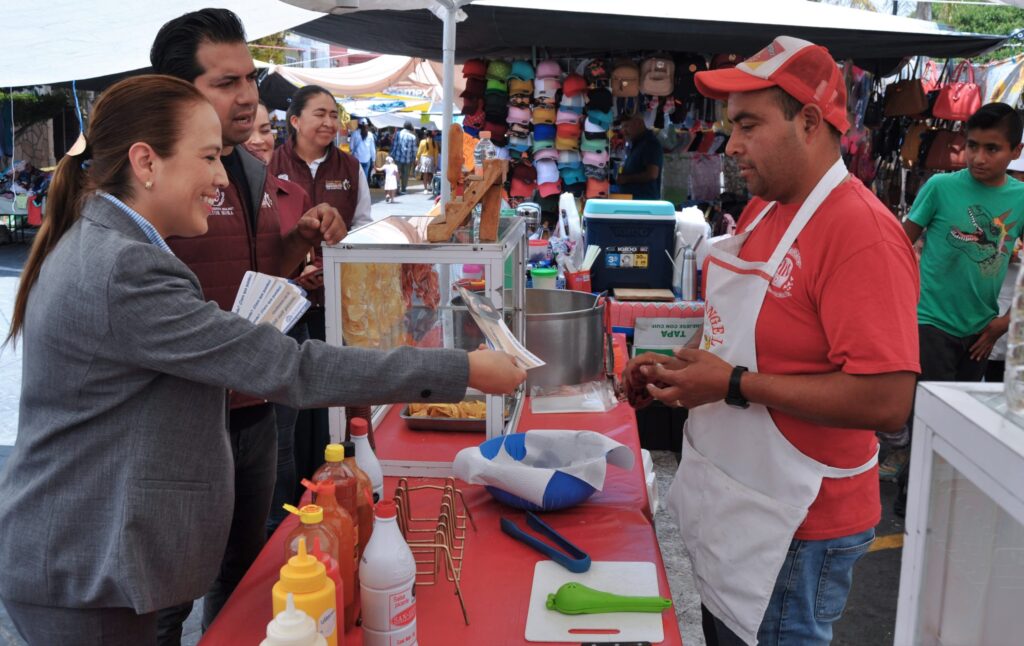 De forma simultanea se reunió con comerciantes y tianguistas de la región, en conjunto con la dirección de comercio de la Secretaría de Economía para ofrecerles los nueve esquemas de financiamiento.