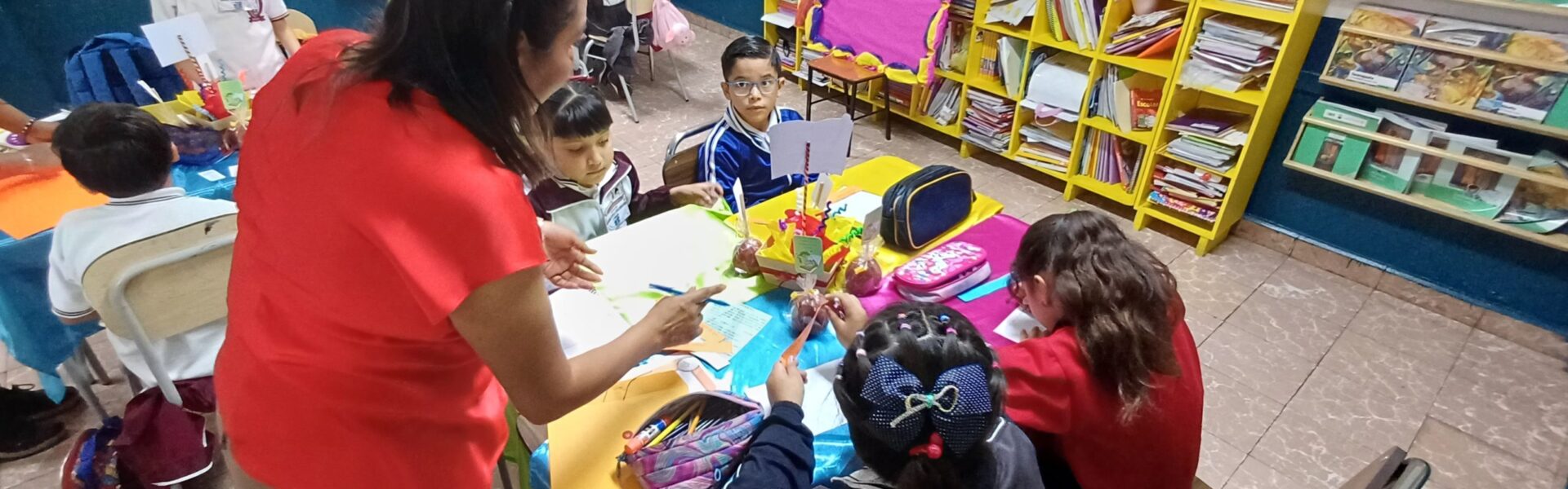 Estudiantes de primaria desarrollan habilidades lectoras y de escritura mediante actividades lúdicas.