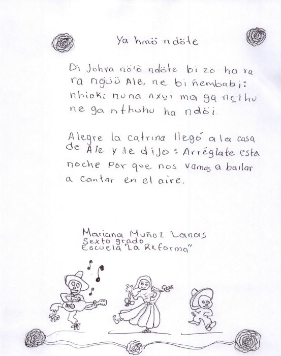 En estos planteles, la creatividad ha florecido en cada rima y verso que las y los estudiantes han construido, llevando la tradición de las calaveritas a un nuevo nivel. Con humor, ingenio y un toque de picardía, estas calaveritas en hñöhñö permiten imaginar a nuestros seres queridos y amigos en su versión “del más allá,” sin dejar de lado las risas y sorpresas. Es una manera única de jugar con la muerte, expresar emociones y honrar la memoria en un idioma que nos conecta profundamente con nuestra historia y cultura.