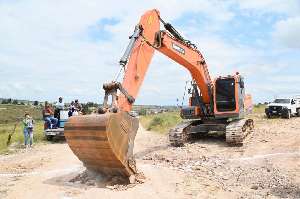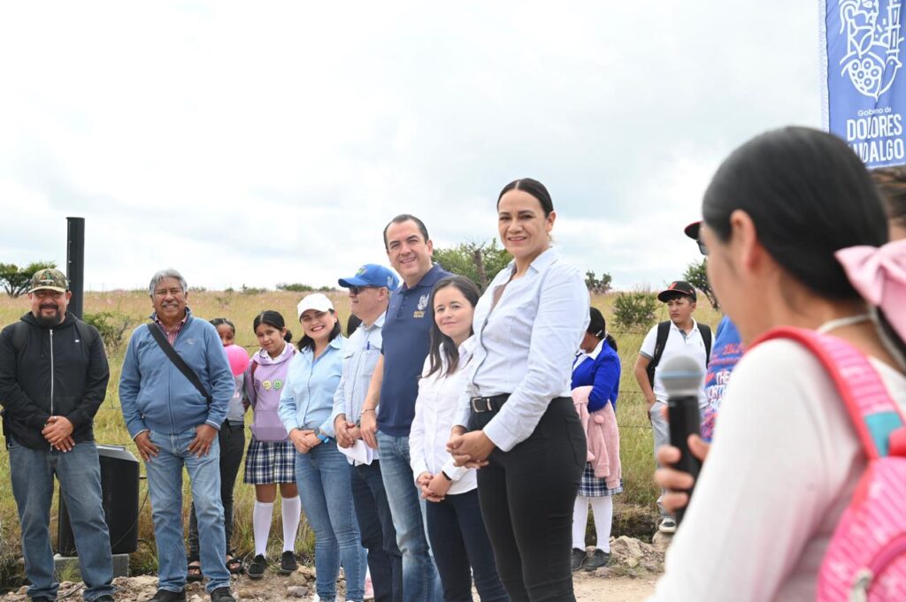 El presidente municipal de Dolores Hidalgo, Adrián Hernández Alejandri en compañía de su esposa Michel Reyes Lucio, presidenta del Sistema DIF y de regidoras del Ayuntamiento, dio el banderazo de arranque de pavimentación de camino en la comunidad de San Juan del Estaño.
