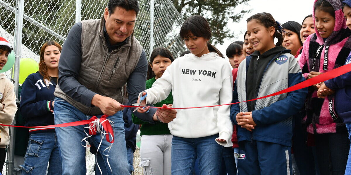 San Miguel de Allende, Gto. Generando más espacios deportivos para la comunidad educativa, el presidente municipal Mauricio Trejo inauguró una cancha de fútbol en la Telesecundaria de la comunidad de «Galvanes».