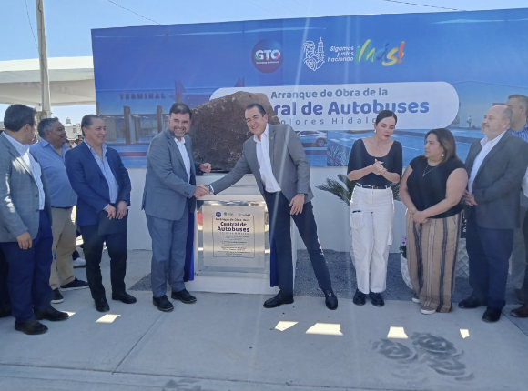 Dolores Hidalgo, Guanajuato.- Con el respaldo de autoridades estatales y municipales, iniciaron las obras de la terminal de la Central de Autobuses del municipio de Dolores Hidalgo.
