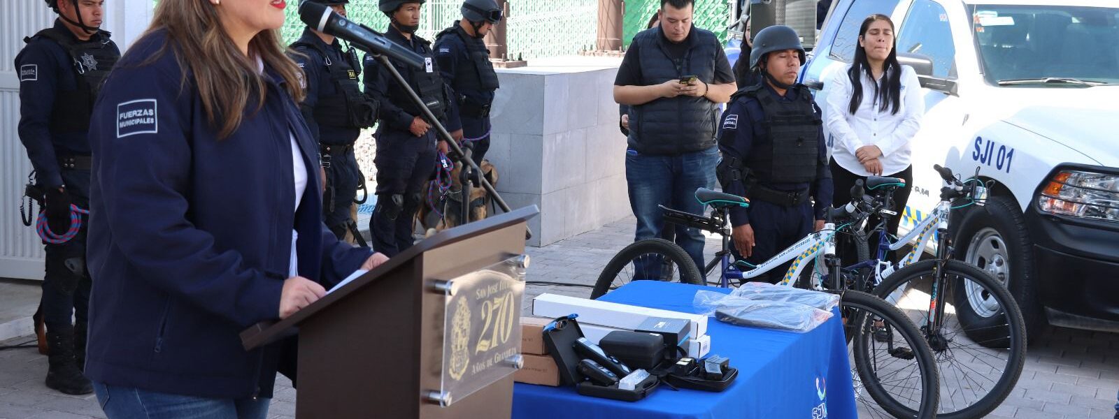 En este evento también se hizo la entrega de equipamiento para la Secretaría de Seguridad Pública, por parte del Fondo Estatal para el Fortalecimiento de Seguridad Pública Municipal se recibieron: 3 carros radio patrullas tipo Pick up, fornituras, cascos balísticos. Mientras que por el Fondo de Apoyo a las Instituciones de Seguridad Pública de los Municipios (FOFISP), cámaras de solapa “body cams”, radios de comunicación portátiles y bicicletas radiopatrullas.