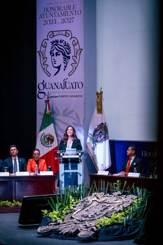 Expresó la Gobernadora del Estado, Libia Dennise García Muñoz Ledo, al atestiguar la Toma de Protesta del Ayuntamiento de Guanajuato 2024-2027, encabezado por Samantha Smith Gutiérrez.