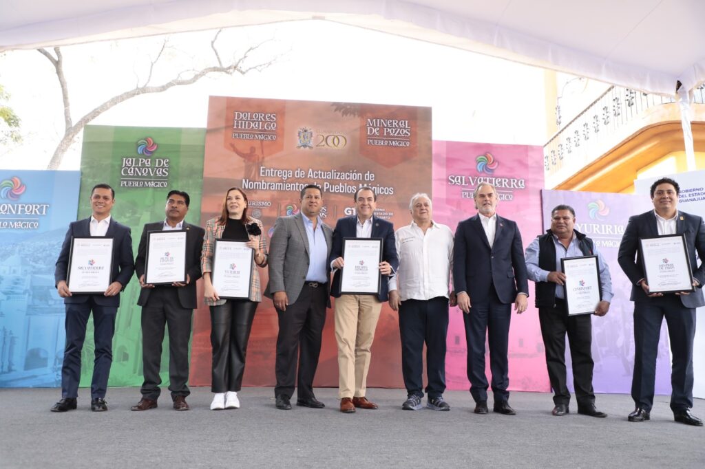 La Secretaría de Turismo del Gobierno de México, de conformidad con lo establecido en los artículos 42, fracciones I y XXI, de la Ley Orgánica de la Administración Pública Federal; 4, fracciones I, III y IV de la Ley General de Turismo; 7 y 11 del Reglamento Interior de la Secretaría de Turismo, ha tenido a bien actualizar el nombramiento como Pueblo Mágico a Dolores Hidalgo, Mineral de Pozos, Jalpa de Cánovas, Salvatierra, Yuriria y Comonfort, dice el documento.