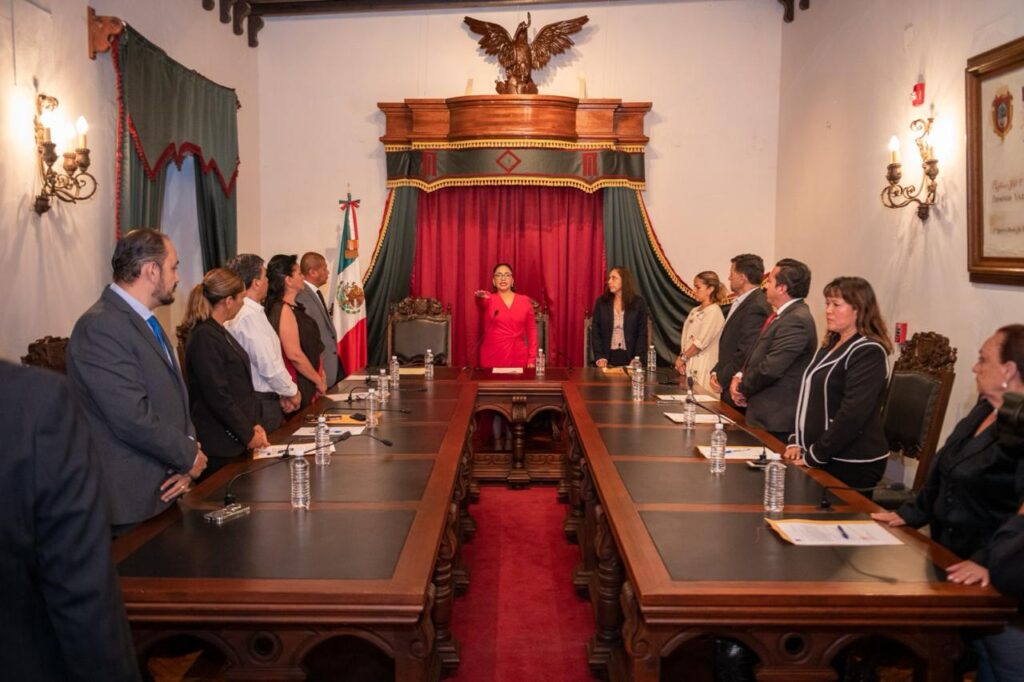 Durante la Sesión Extraordinaria 81 del Ayuntamiento, la ex secretaria de Gobierno y Ayuntamiento, Laura González Hernández, rindió toma de protesta como presidenta municipal interina ante el Pleno del Ayuntamiento.