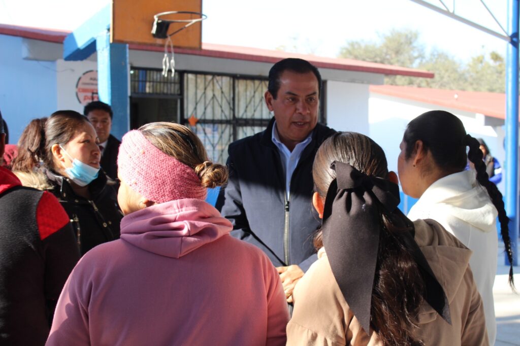 La directora del plantel, Irma Gisela Villanueva Díaz, y Carolina López Aguilar, presidenta del Comité de Madres y Padres de Familia, agradecieron la construcción del techado de la cancha escolar, una obra que, además de proteger a las y los estudiantes del sol y la lluvia, fomenta actividades recreativas y deportivas.