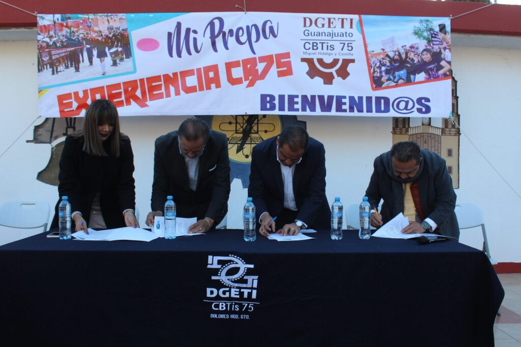 La firma del acuerdo tuvo lugar en las instalaciones del CBTis 75, en una ceremonia que contó con la presencia de autoridades educativas, por parte de la SEG: Juan Rendón López, Delegado Regional I; y Maritza Bianney Acuña Ortiz, jefa del departamento de Articulación e Innovación Educativa; así como José Cristóbal Pérez Muñiz, director del CBTis 75; y Jorge Palacios González, jefe del departamento de Vinculación con el Sector Productivo.