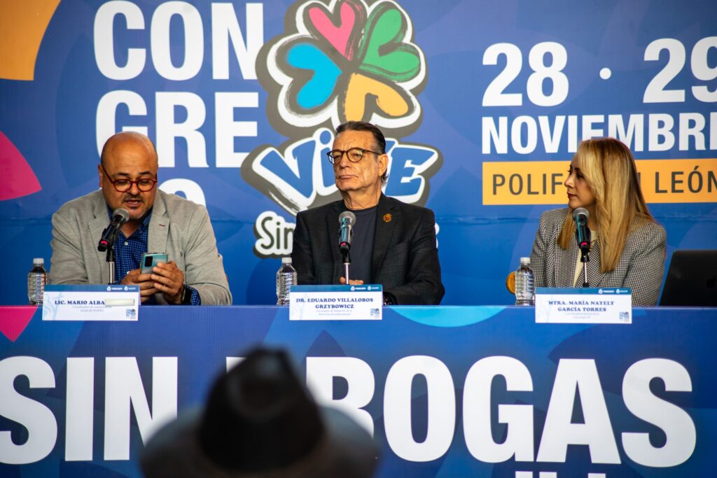 León, Guanajuato.- La Secretaría de Salud de Guanajuato presentó el Congreso “Vive sin Adicciones” a realizarse este 28 y 29 de noviembre en Poliforum León.