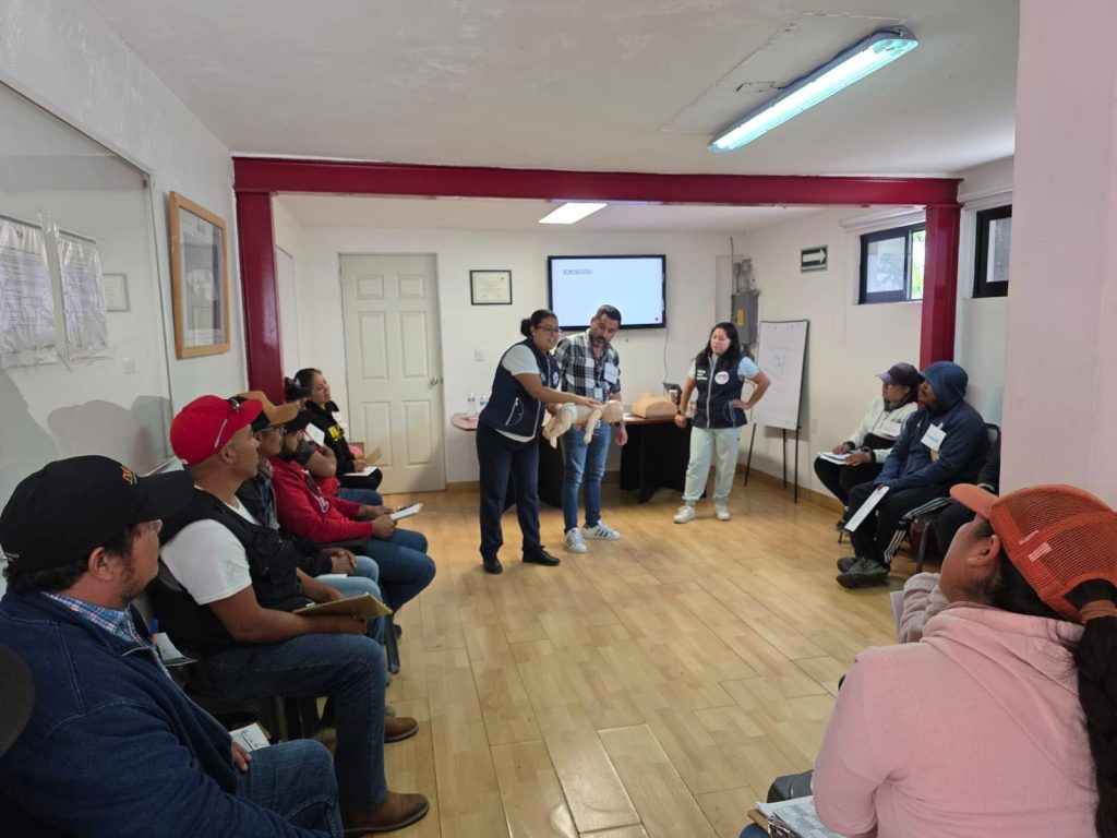 Celaya, Guanajuato. La Secretaría de Salud ofreció una capacitación en seguridad laboral en primer respondiente al personal de la empresa “Integradora Hortícola del Bajío S. de R.L. de C.V.”.
