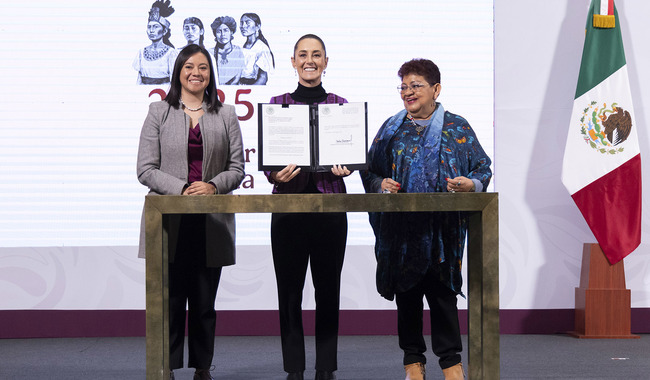 Al final de la conferencia matutina, la Presidenta de México firmó la iniciativa de reforma en compañía de la consejera jurídica del Ejecutivo Federal, Ernestina Godoy Ramos y la subsecretaria de Educación Básica, Angélica Noemí Juárez Pérez.