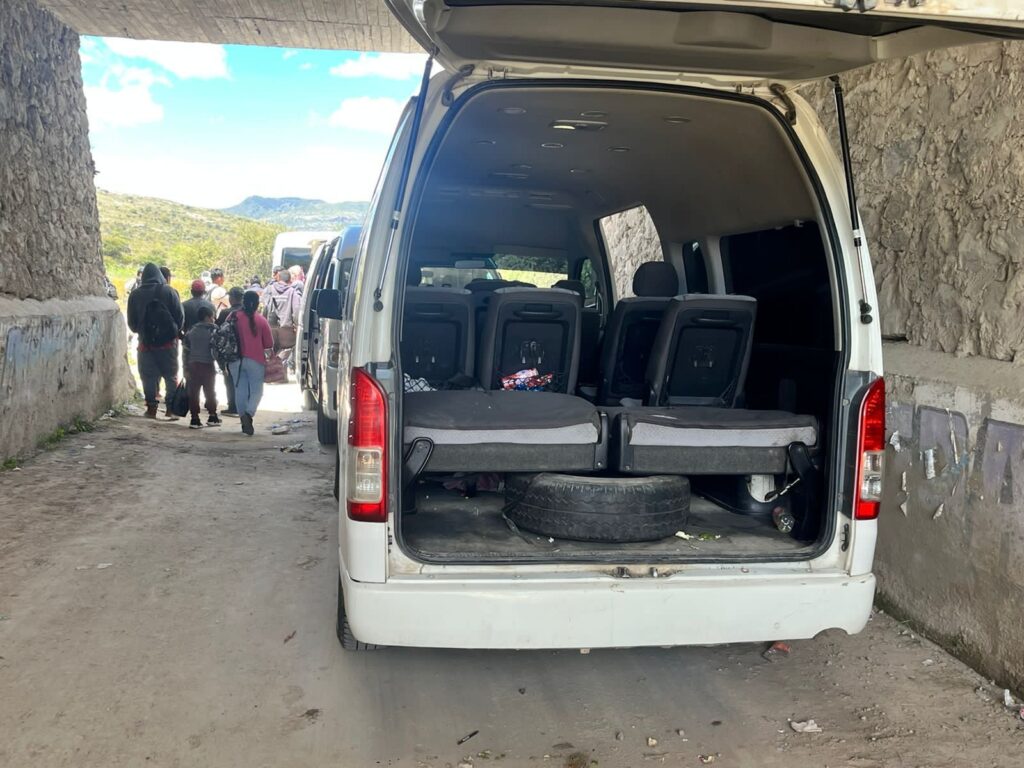 Derivado de las acciones de verificación migratoria realizadas por el personal del INM, se pidió a los conductores de los vehículos detener su marcha en San Pablo Huitzo, en dirección a la capital oaxaqueña.