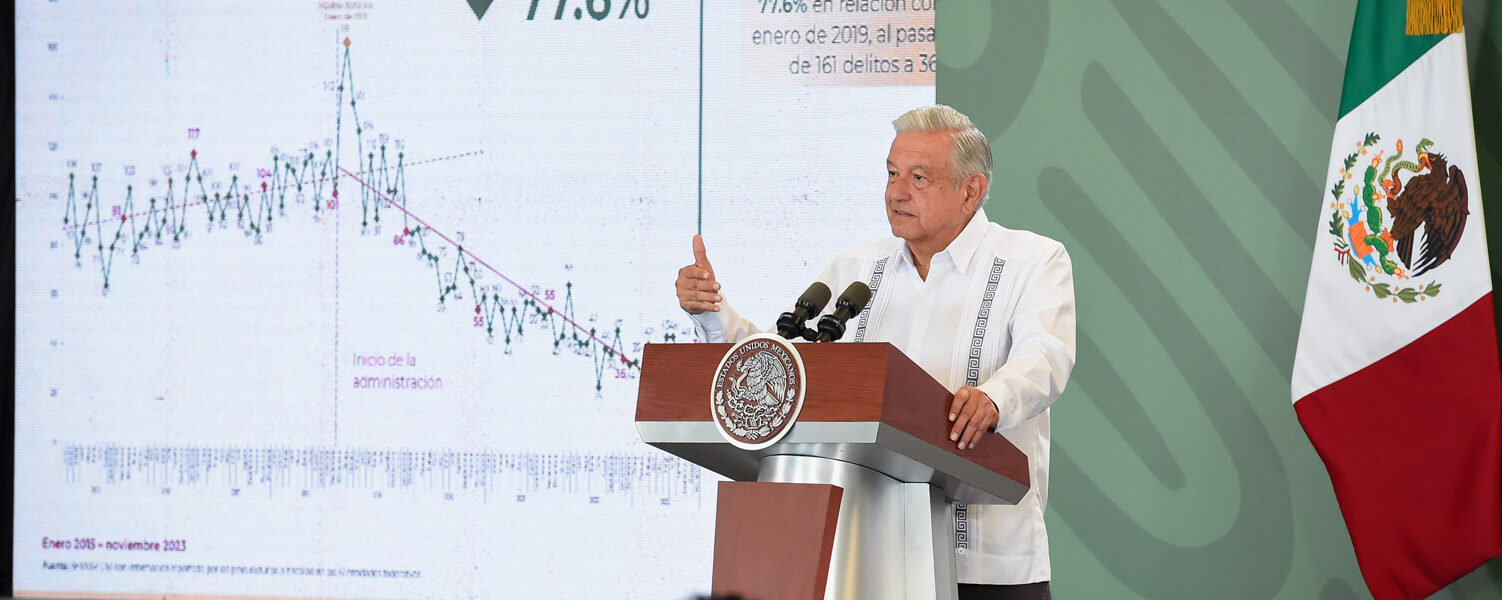 El secretario de la Defensa Nacional, Luis Cresencio Sandoval González, detalló que los delitos de trata de personas, robo a casa habitación, robo de vehículos y homicidio doloso registraron cifras a la baja en noviembre de 2023, mientras que el secuestro no ha tenido incidencia por dos años consecutivos, según los últimos datos del Secretariado Ejecutivo del Sistema Nacional de Seguridad Pública.