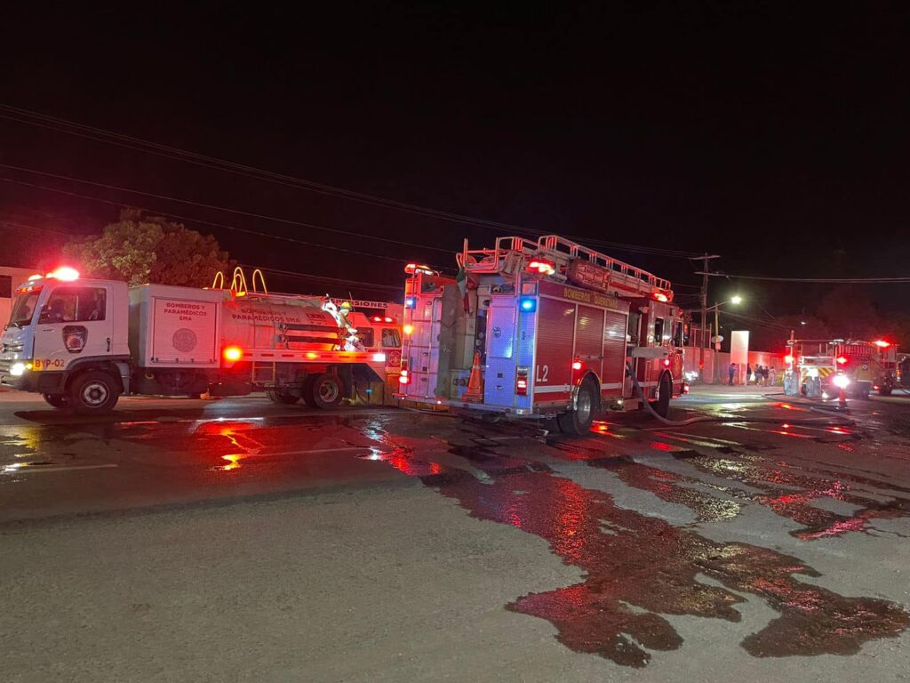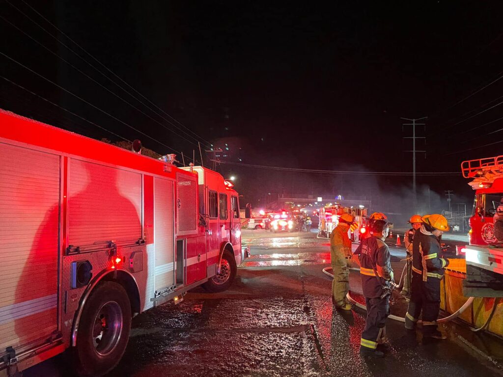 La carretera quedó completamente cerrada por las autoridades en lo que los bomberos sofocaban el incendio que consumía los locales de comida.