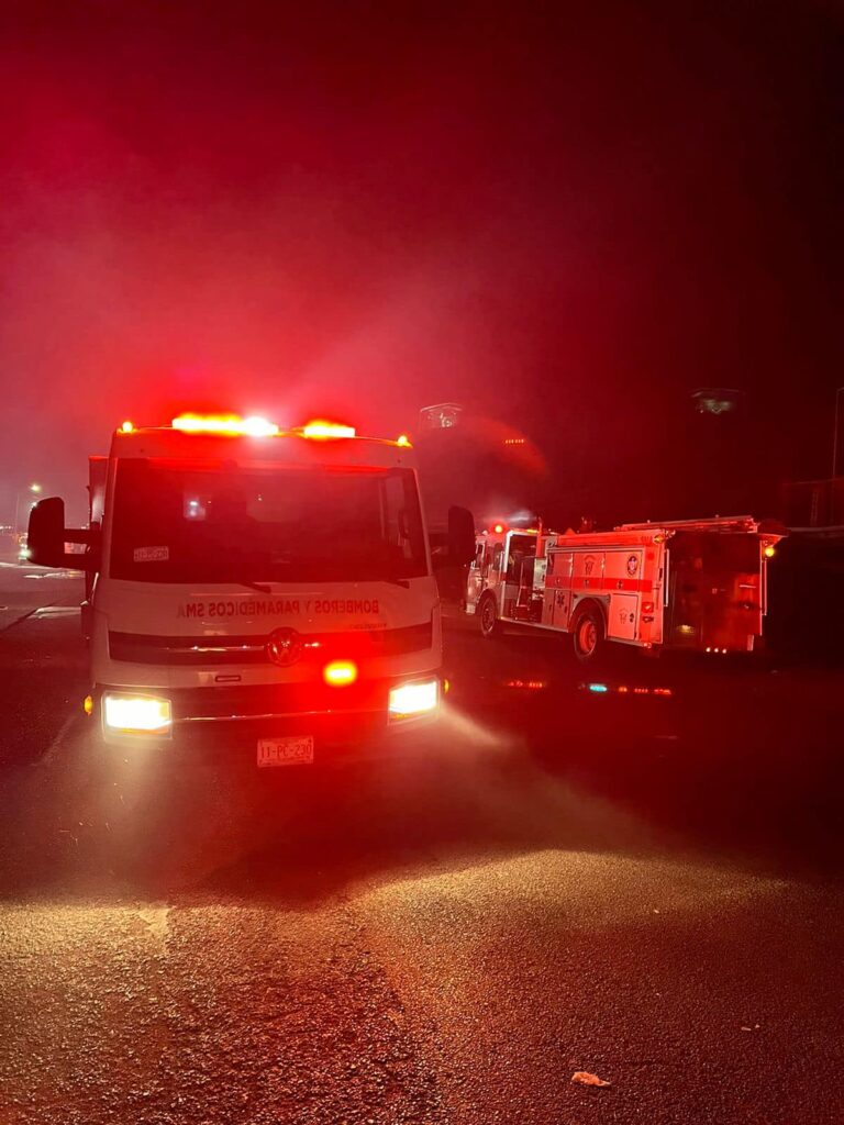 San Miguel de Allende, Guanajuato. Varios puestos que se encuentran en la orilla de la carretera Querétaro a San Miguel de Allende, a la altura de la comunidad de Buenavista perteneciente a Querétaro, fueron consumidos por el fuego, en el lugar diferentes corporaciones de emergencia trabajaron para sofocar el incendio.