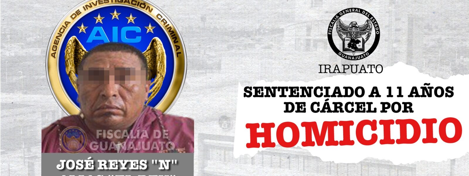 Irapuato, Gto.- JOSÉ REYES “N” alias “El Rey” fue capturado por la Fiscalía de Guanajuato, acusado del homicidio de una mujer el 16 de mayo de 2021, en la comunidad La Caja en Irapuato. La Fiscalía de Guanajuato demostró con pruebas su responsabilidad en el asesinato de Avelina “N”, por lo que se encuentra cumpliendo su sentencia en la cárcel.
