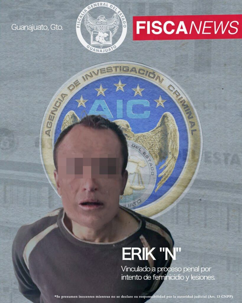 Al ser puesto a disposición de la Fiscalía de Guanajuato, este sujeto fue llevado ante el juez quien lo vinculó a proceso penal por los delitos de tentativa de feminicidio y lesiones en agravio de la mujer y su menor hijo.