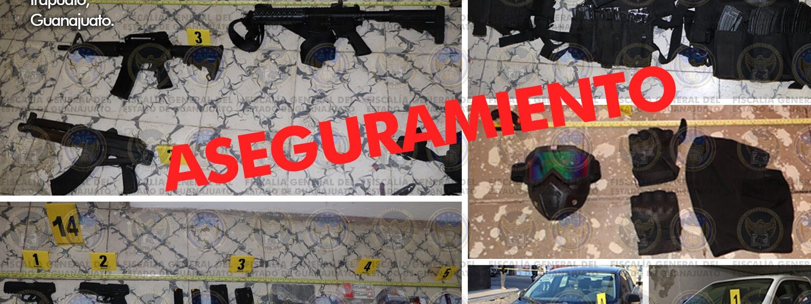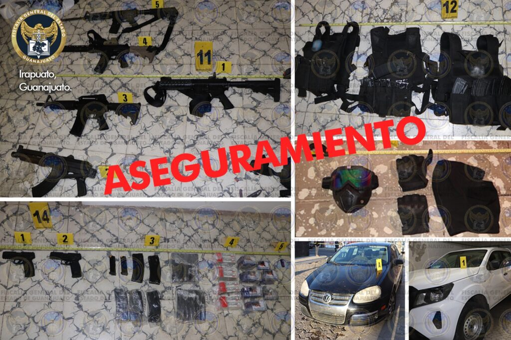 En el lugar fueron aseguradas armas de fuego largas y cortas, cartuchos y cargadores útiles, equipo táctico y vehículos de motor, entre otros objetos.