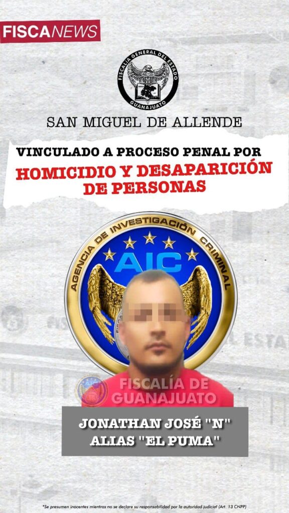 LA FISCALÍA DE GUANAJUATO OBTIENE PRISIÓN PARA “EL PUMA” POR HOMICIDIO Y DESAPARICIÓN DE PERSONAS, EN SAN MIGUEL DE ALLENDE