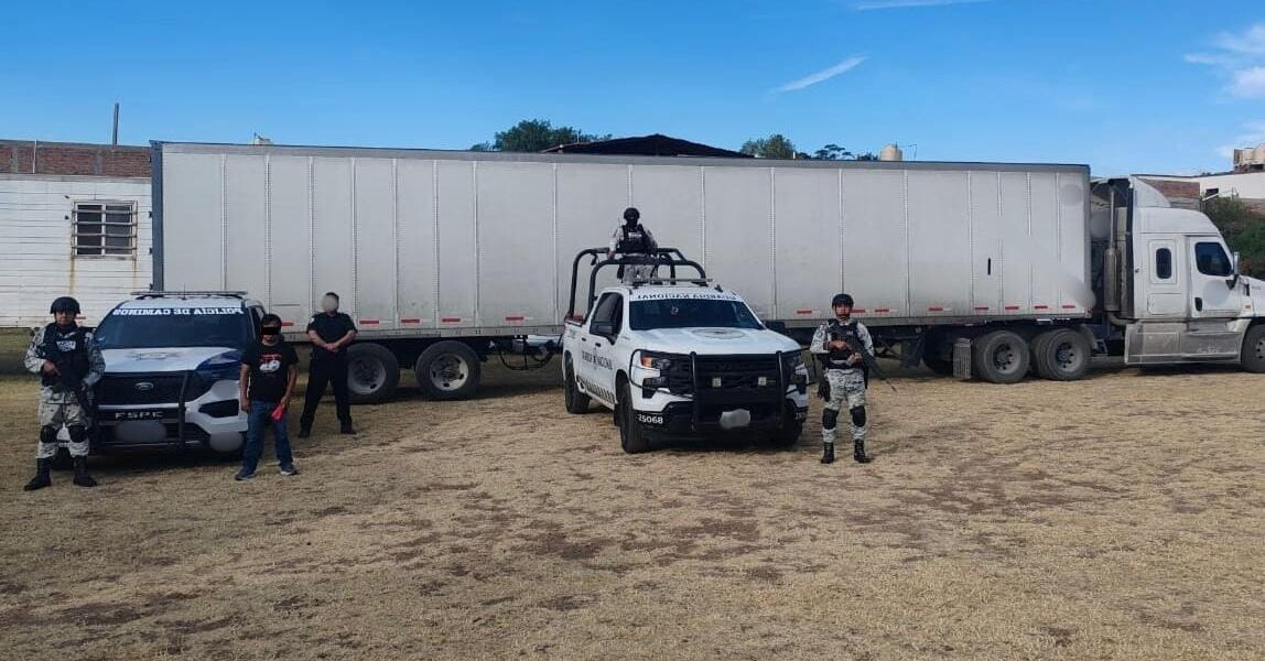 RECUPERA SECRETARÍA DE SEGURIDAD Y PAZ TRACTOCAMIÓN CON MERCANCÍA VALUADA EN CINCO MILLONES DE PESOS EN SAN DIEGO DE LA UNIÓN