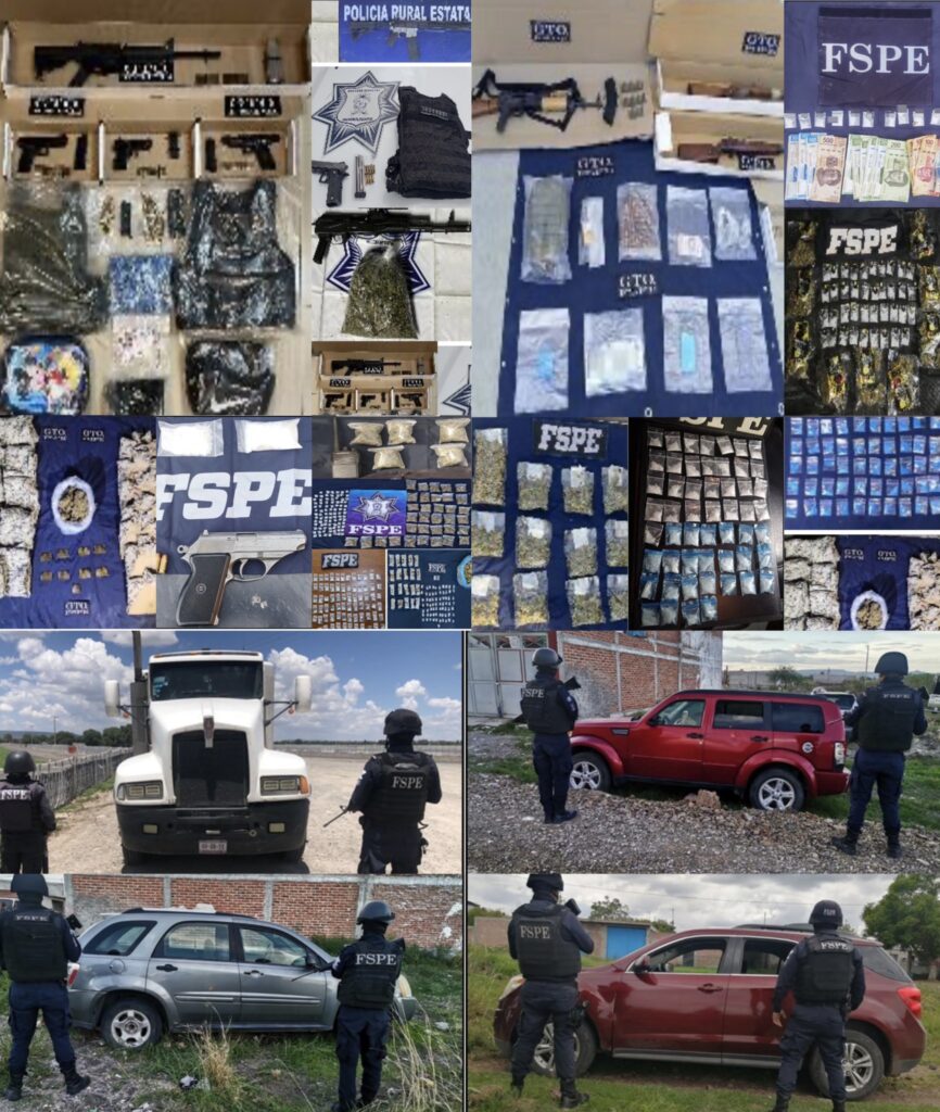 Como resultado de los aseguramientos de droga, fueron detenidas en estas acciones un total de 55 personas que fueron puestas a disposición de la autoridad competente y la mayor parte de estas capturas se realizaron en los municipios de: Abasolo, Acámbaro, Celaya, Cortazar, Irapuato, Juventino Rosas, León, Pénjamo, Salvatierra, San Diego de la Unión, San José Iturbide, San Luis de la Paz, San Miguel de Allende, Tarimoro, Valle de Santiago, Silao y Villagrán.