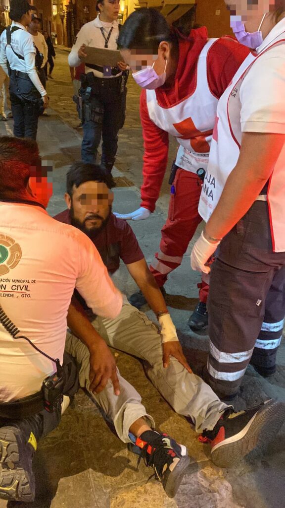 San Miguel de Allende, Gto. Derivado de un percance automovilístico, la Secretaría de Seguridad Ciudadana atendió a un joven lesionado por atropellamiento.