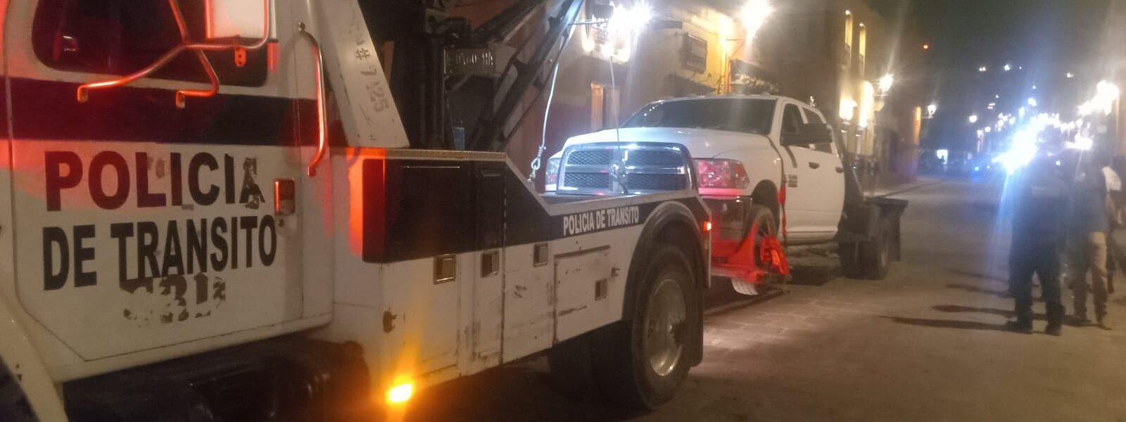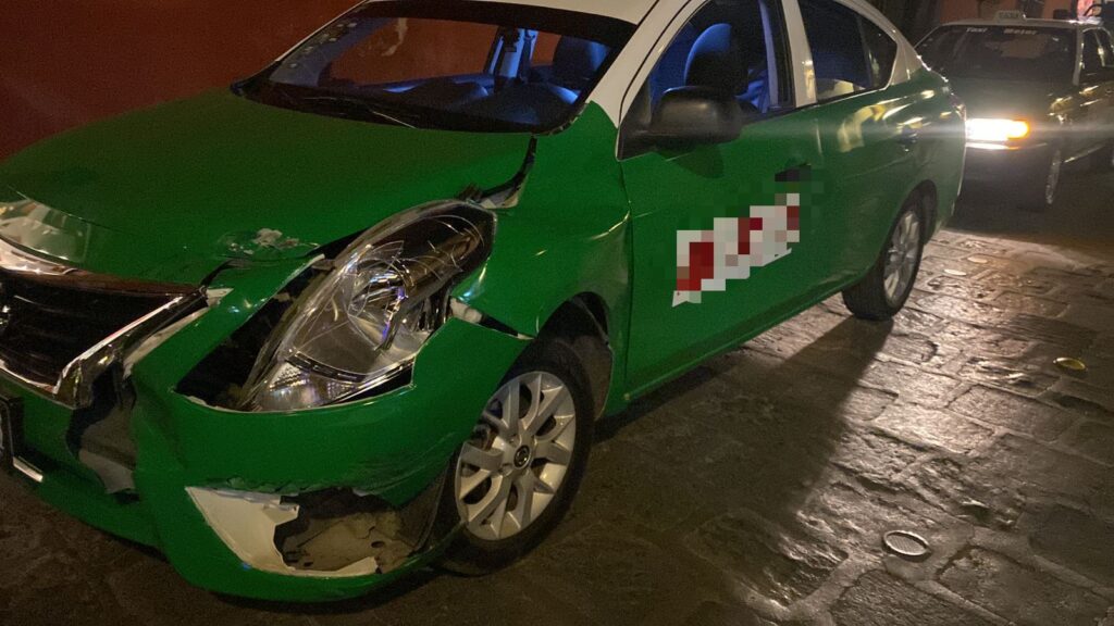 Los hechos sucedieron en la calle San Francisco de la zona centro, cuando un vehículo Dodge tipo plataforma, se quedó sin frenos e impactó un automóvil del servicio público.