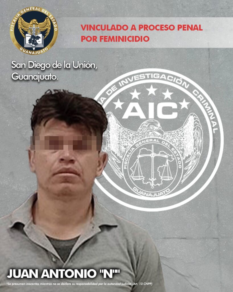 San Diego de la Unión, Guanajuato.– La Fiscalía de Guanajuato capturó a presunto feminicida y aportó datos de prueba que permitieron fuera vinculado a proceso penal por el asesinato de Ana María «N», en San Diego de la Unión.